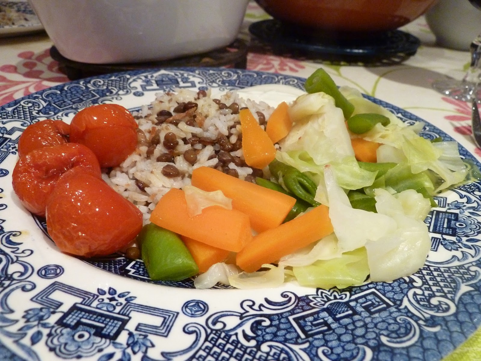 3. When the rice, lentils and tomatoes are approaching ready (after about 30 minutes) steam the chopped veg.